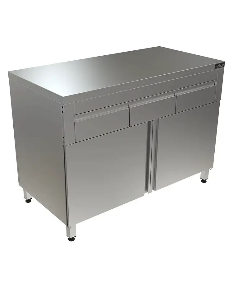 Главное достоинство, которым обладает этот стол тумба с дверцами СПЯ-60/60/Р – это полное исполнение из высококачественной нержавеющей стали. Данный материал коррозионно-стоек, легко моется и выдерживает интенсивные санитарные обработки. выдвижные ящики обеспечивают удобное хранение. Столешница стол тумбы также выполнена из стали нержавеющая сталь, что гарантирует устойчивость к нагрузкам и влаге. Дверцы - . Модель поставляется собранной, что упрощает ее ввод в эксплуатацию.