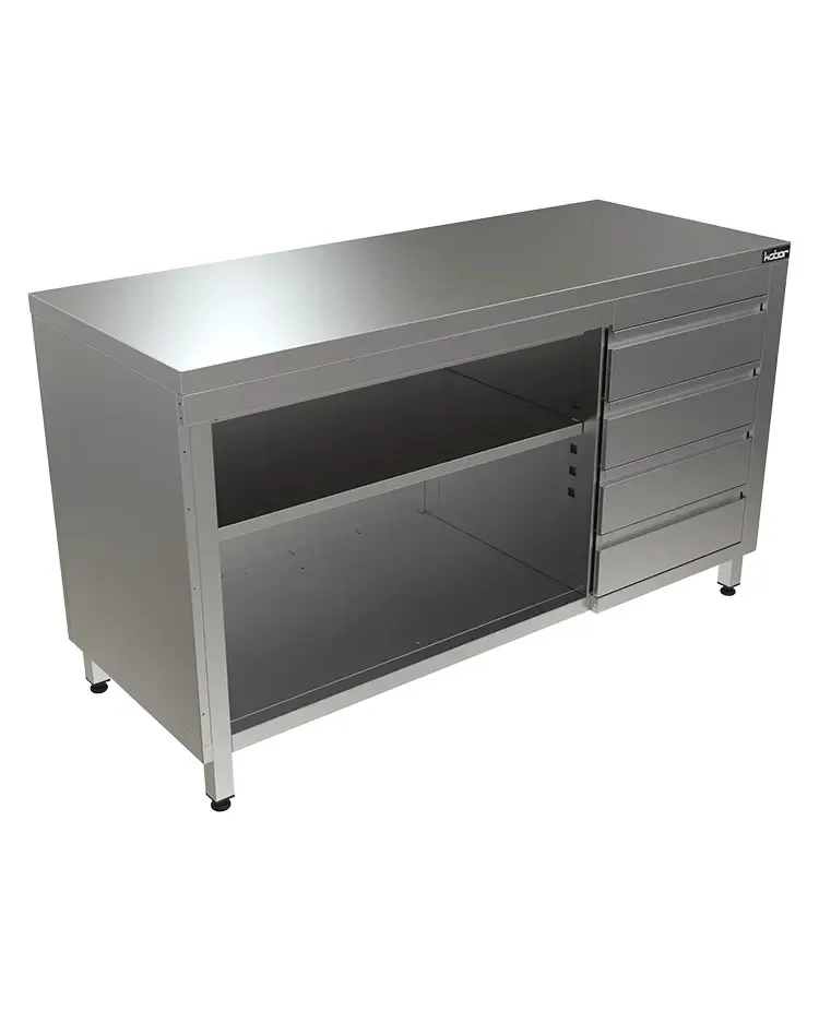 Главное достоинство, которым обладает этот стол тумба без дверей СТ/1-120/70/О – это полное исполнение из высококачественной нержавеющей стали. Данный материал коррозионно-стоек, легко моется и выдерживает интенсивные санитарные обработки. выдвижные ящики обеспечивают удобное хранение. Столешница стол тумбы также выполнена из стали нержавеющая сталь, что гарантирует устойчивость к нагрузкам и влаге. Модель поставляется собранной, что упрощает ее ввод в эксплуатацию.