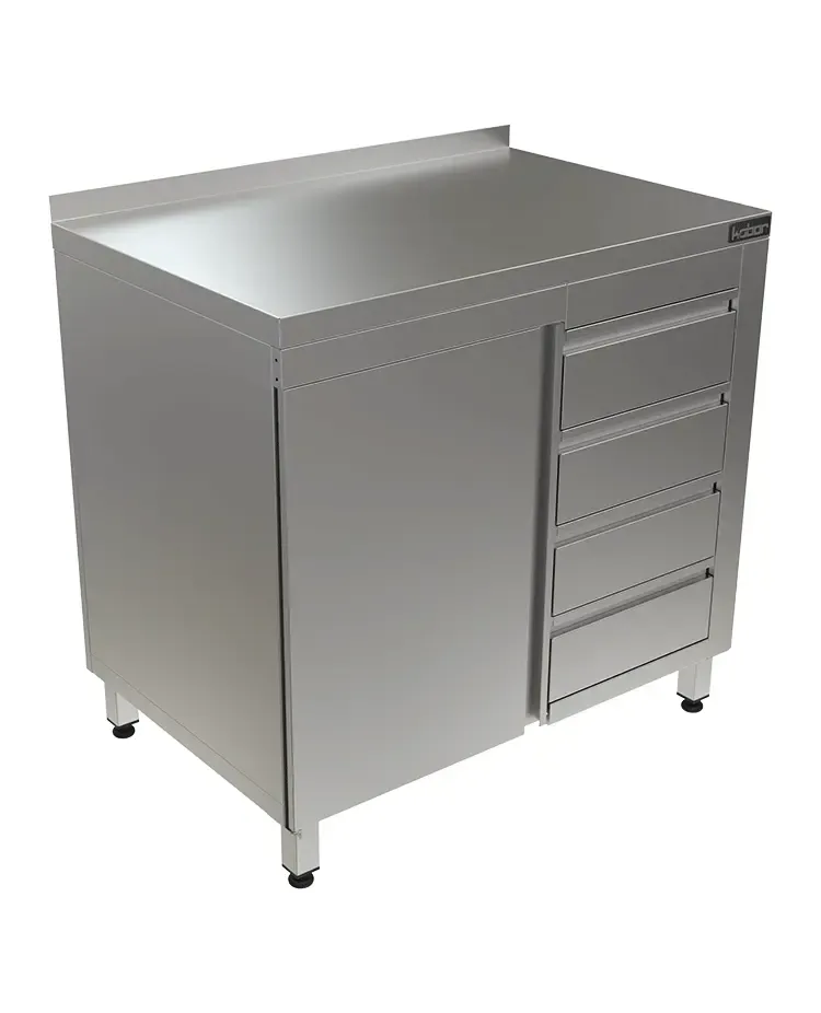 Главное достоинство, которым обладает этот стол тумба с дверцами СТБ/1-90/60/Р – это полное исполнение из высококачественной нержавеющей стали. Данный материал коррозионно-стоек, легко моется и выдерживает интенсивные санитарные обработки. выдвижные ящики обеспечивают удобное хранение. Столешница стол тумбы также выполнена из стали нержавеющая сталь, что гарантирует устойчивость к нагрузкам и влаге. Дверцы - . Модель поставляется собранной, что упрощает ее ввод в эксплуатацию.