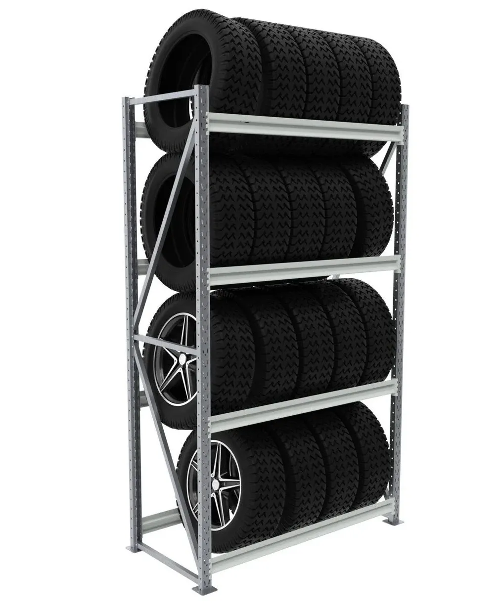 Основное предназначение данного стеллажа для шин — грамотное сезонное хранение летней и зимней автомобильной резины в сменных комплектах. Он станет незаменимым атрибутом в частном гараже, на шиномонтаже или на складской территории автосервиса. 4 просторных яруса позволяют рассортировать покрышки по сезонам или типу, обеспечивая к каждой паре легкий доступ. Больше не придется перемещать тяжелую гору резины в поисках нужного комплекта.